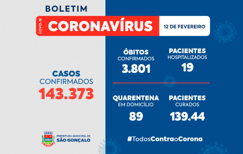 Até o momento, São Gonçalo contabiliza 143.373 casos confirmados, 139.464 curados, 19 hospitalizados na Rede Pública Municipal de Saúde e 3.801 óbitos confirmados.