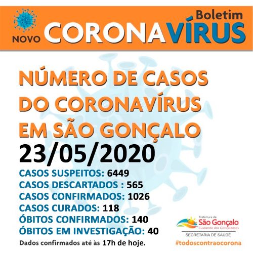 Ao todo, São Gonçalo contabiliza 6449 casos suspeitos, 1026 confirmados, 565 descartados, 118 curados, 140 óbitos confirmados e 40 óbitos em investigação.