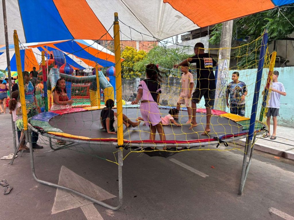 Realizada pela Fundação de Artes, Esporte e Lazer de São Gonçalo (Faelsg), a Caravana de Arte e Lazer leva recreação diversificada para os pequenos, que podem interagir com os personagens vivos, participar de brincadeiras com animadores, se divertir nos diferentes brinquedos infláveis e ainda participar de oficinas de desenho e pinturinha corporal.