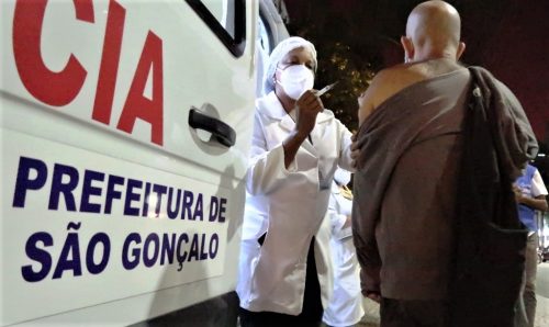 A equipe do Consultório na Rua da Secretaria Municipal de Saúde e Defesa Civil de São Gonçalo vacina os moradores em situação de rua contra o coronavírus, gripe e hepatite B e C. Os profissionais saem para a realização do serviço de segunda a sexta, das 8h às 17h. E, quinzenalmente, no período noturno entre 16h e 21h.