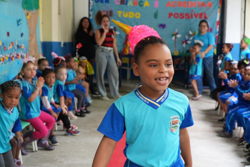 Esta última semana, de 6 a 10 de outubro, foi escolhida para ser a Semana da Criança em algumas escolas da rede municipal de São Gonçalo. Os alunos se divertiram com a programação que englobou o dia do cabelo divertido, dia da mochila maluca, dia da meia maluca, dia da fantasia, desfile de primavera, dia do cinema entre outras recreações e brincadeiras. Além disso, o cardápio da merenda escolar também foi diferenciado, para acompanhar o ritmo de festa sem deixar a alimentação saudável de lado. Para as outras escolas, a diversão será de 13 a 17 de outubro.