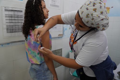 A advogada Raquelane Duarte, de 34 anos, foi uma das gonçalenses que atualizou a caderneta de vacinação de sua filha, a pequena Manuela, de 8 anos, neste sábado. Ele esteve no Polo Sanitário Washington Luiz Lopes, Zé Garoto, e aproveitou também para se vacinar.