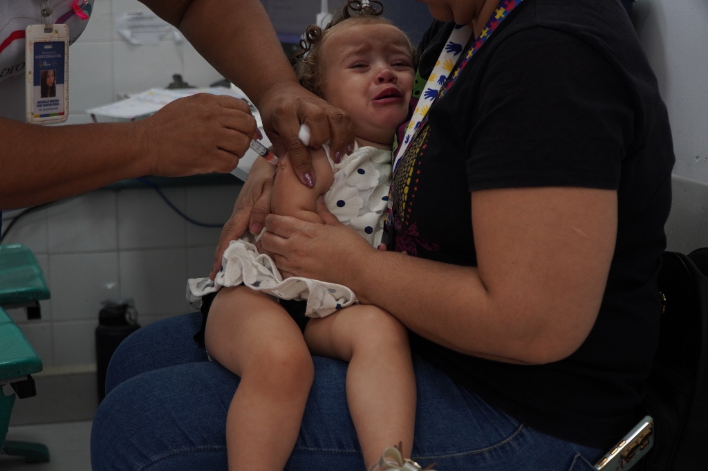 Clarice Slama, de 49 anos, levou sua neta Esther, de 1 ano e 4 meses, para se vacinar. A pequena tomou a vacina da gripe, da febre amarela, da hepatite e a tríplice viral.