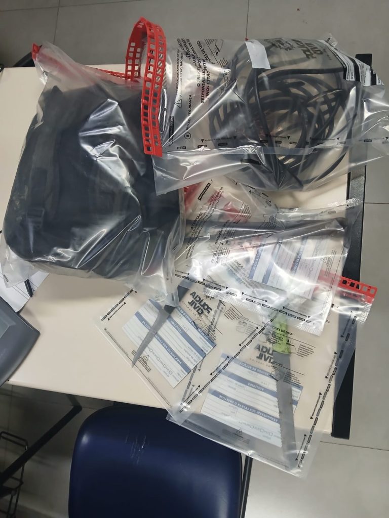 Com o suspeito, foi encontrada uma mochila com 20 metros de fio de cobre, um alicate de corte e duas facas. Ele foi algemado e levado para a 72ª DP (Mutuá), onde foi constatado que possui passagens por furto e posse de drogas. Depois, ele foi levado para a 73ª DP (Neves), onde permaneceu preso.