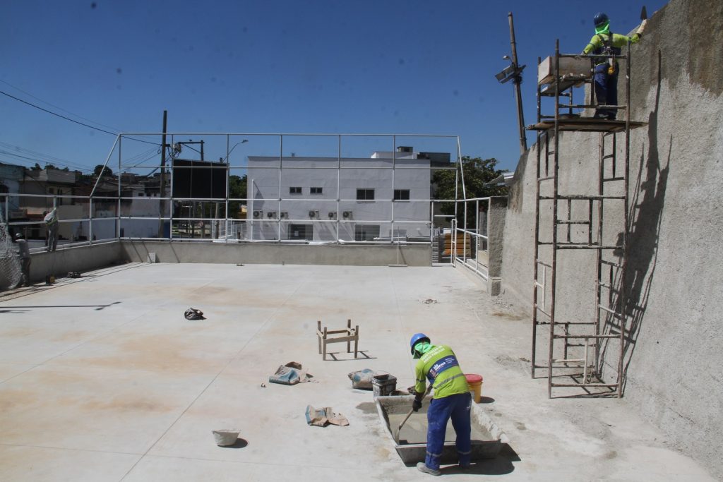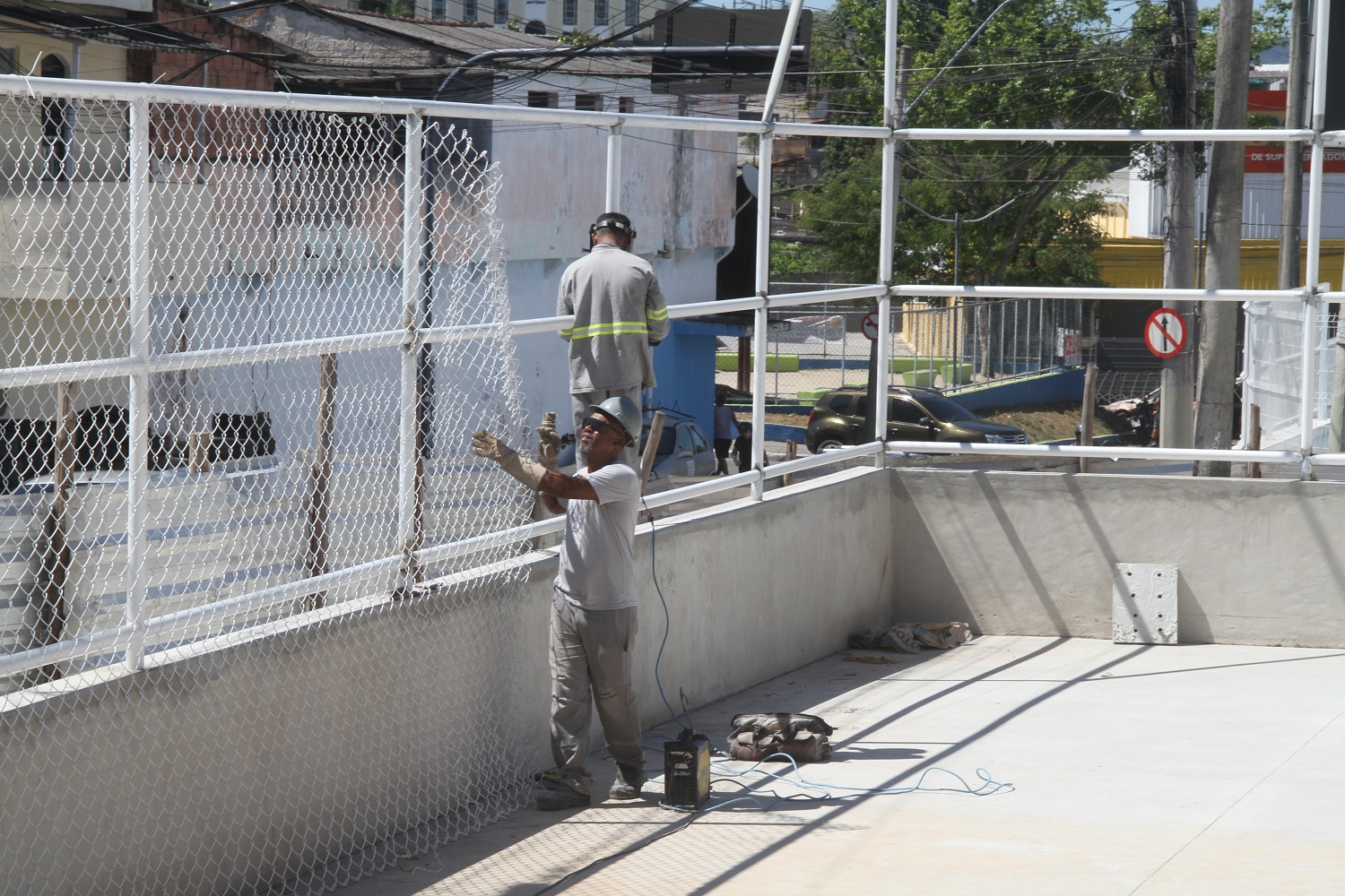 Atualmente, estão sendo feitos acabamentos na rampa de acessibilidade para pessoas com deficiência (PcDs) que quiserem acessar a quadra de basquete. As equipes também preparam as muretas das quadras para pintura e estão finalizando os acabamentos na área da tela de alambrado.
