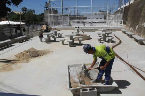 As obras do programa Praça Renovada no bairro Jardim Miriambi seguem revitalizando o espaço de lazer. Localizada ao lado da nova creche municipal, o espaço está sendo transformado pelas intervenções da Secretaria de Conservação da Prefeitura de São Gonçalo. As obras estão 90% concluídas. Esta será a 21ª área de lazer revitalizada pelo programa.