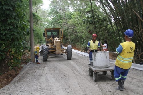 As obras estão atingindo vias que nunca haviam sido pavimentadas, como a Rua Jerusalém, a Rua Professor Carneiro Ribeiro e a Rua Waldemar Solano de Sá, que, nesta quinta-feira (11), estavam recebendo meio-fio e terraplanagem.