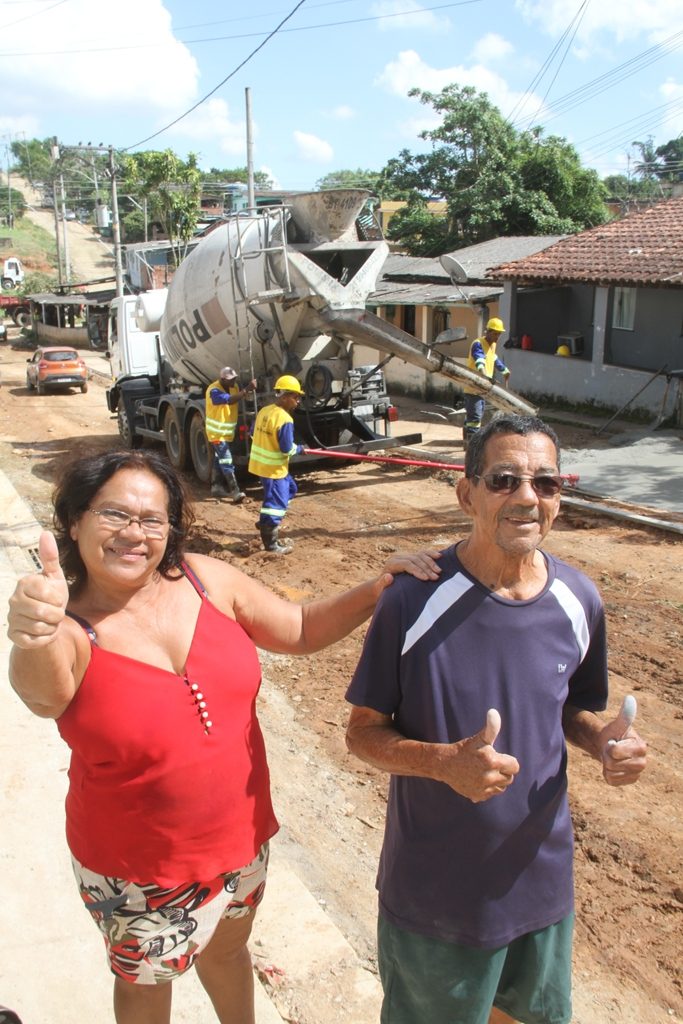 “O bairro era muito feio, a rua tinha muita lama, não conseguíamos andar quando chovia, andávamos escorregando. Agora, as obras chegaram aqui! As calçadas estão sendo feitas e estou animada com a pavimentação. Já está bem melhor para transitarmos, passando pela calçada nova, está ficando ótimo”, disse.