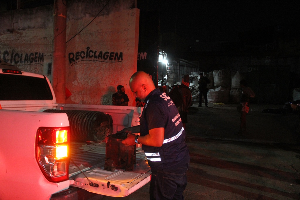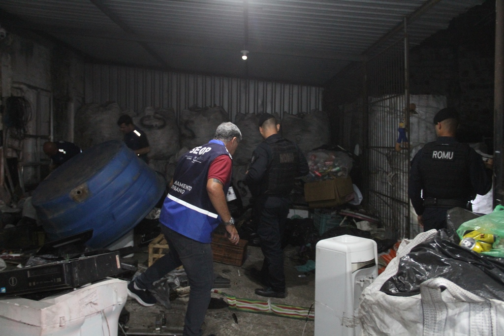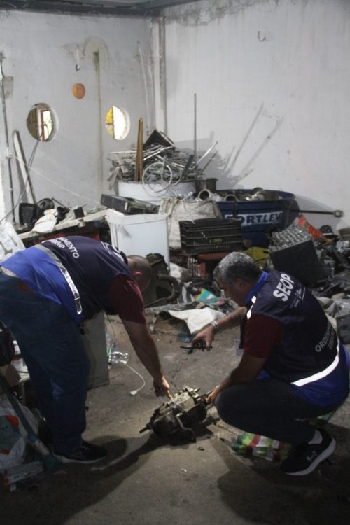 Os agentes da Subsecretaria de Fiscalização de Posturas foram ao comércio após receberem denúncia. No espaço clandestino, que não possuía alvará de localização e nem CNPJ, foram apreendidos cabos de fios da Anatel, tampa de bueiro, peças e acessórios de veículos: duas caixas de marcha e cinco partes de motores.