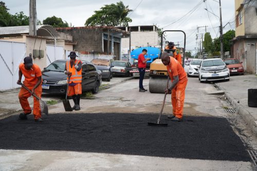 Município também atua no recapeamento asfáltico após a liberação das vias pelas forças do governo do Estado no Jardim Catarina