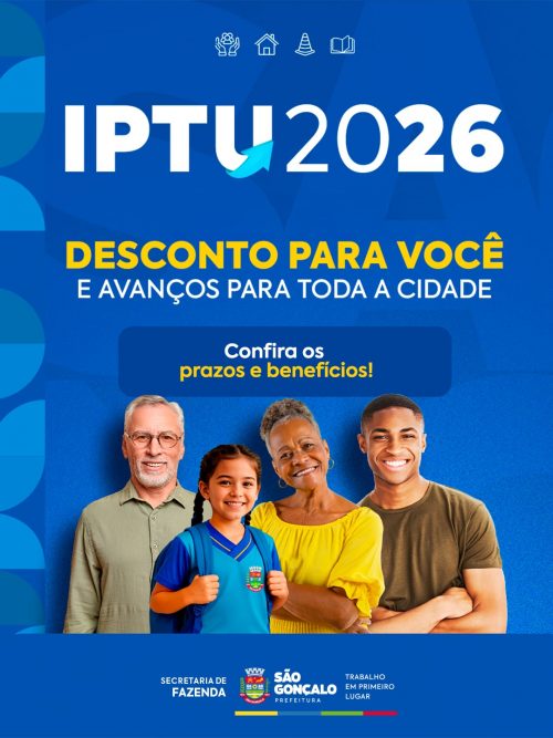 A Secretaria de Fazenda da Prefeitura de São Gonçalo divulgou as regras, prazos e formas de pagamento do Imposto Predial e Territorial Urbano (IPTU) e da Taxa de Coleta de Lixo Domiciliar (TCLD) para o exercício de 2026.