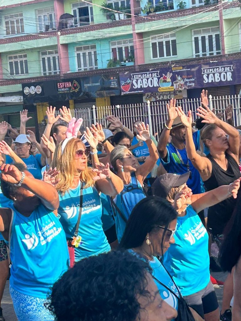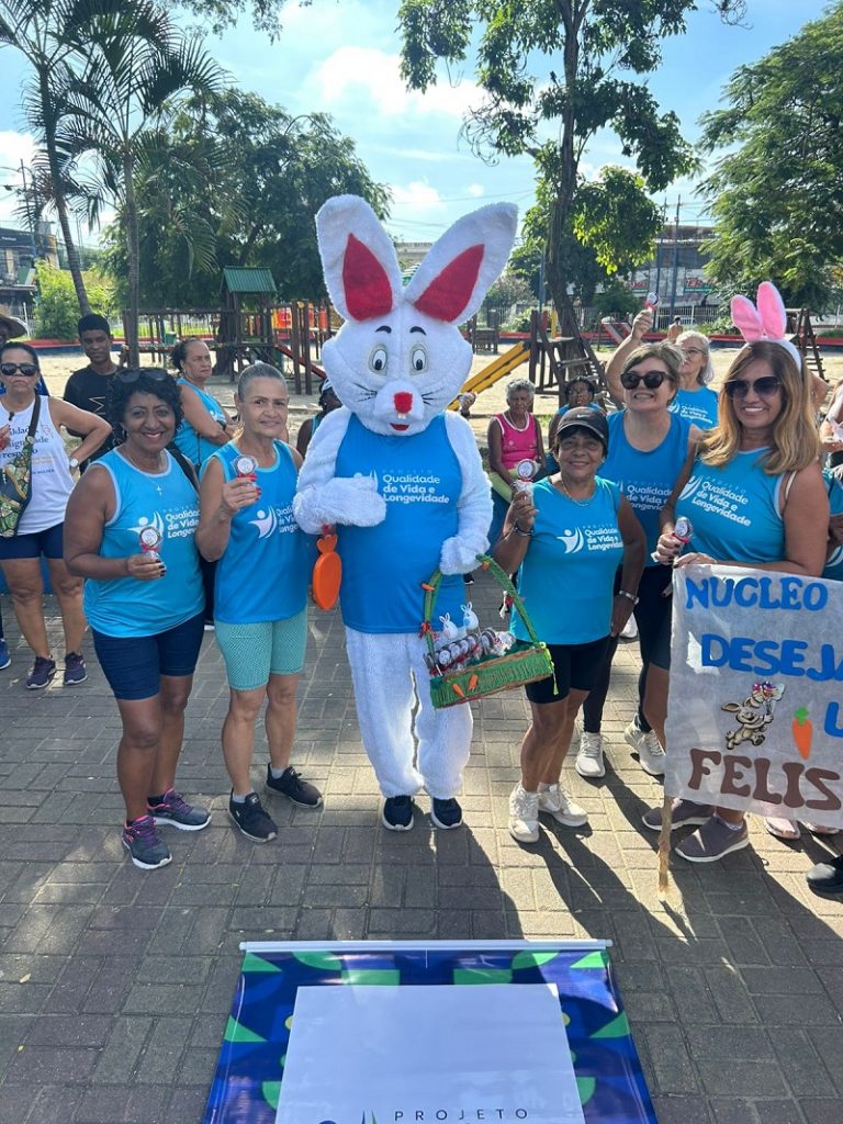 Na manhã desta segunda-feira (30), nove núcleos do projeto Qualidade de Vida e Longevidade se reuniram em um aulão especial de páscoa na Praça da Trindade. O projeto faz parte da Secretaria de Esporte e Lazer da Prefeitura de São Gonçalo.