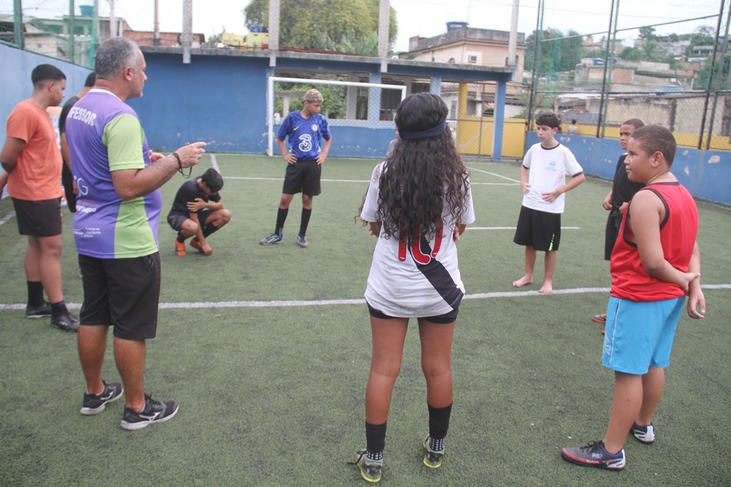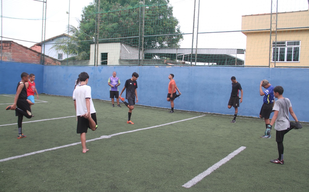 O treinador de futebol do núcleo do Porto Novo, Luciano Almeida, conta que além do exercício físico, o projeto é importante para a socialização dos participantes.