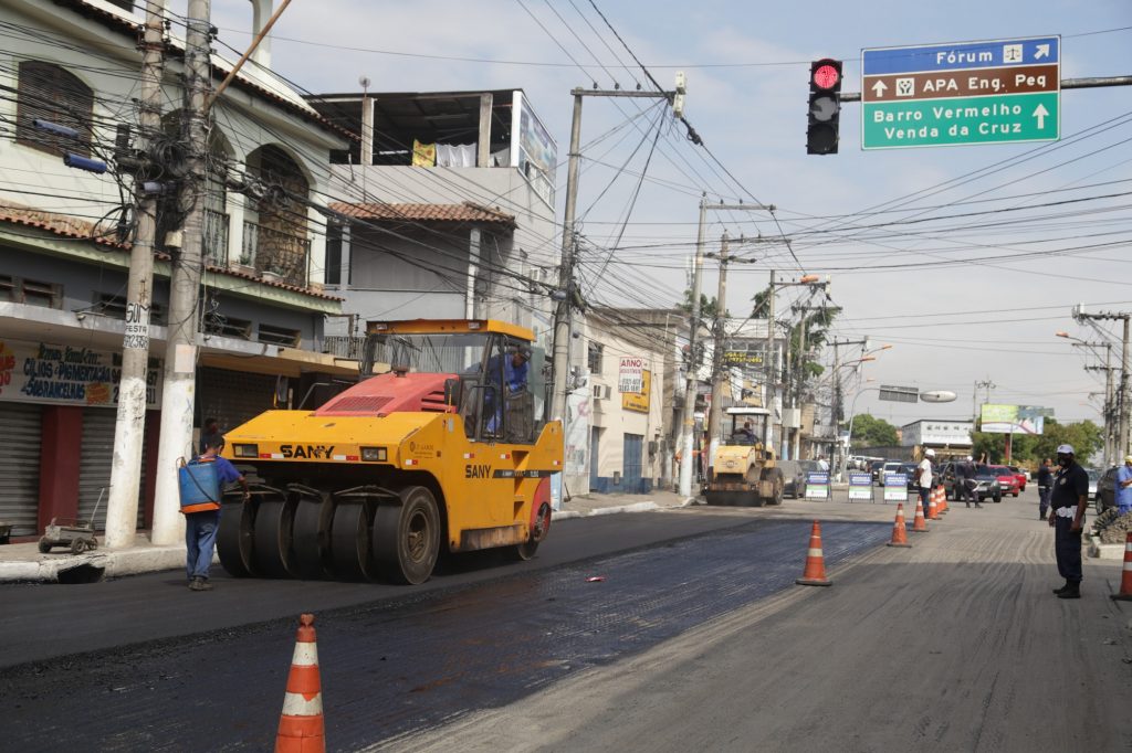 Já o trabalho de fresagem segue avançando, preparando o terreno para receber o asfalto nas próximas semanas. O mesmo processo será realizado ao longo de toda avenida, que possui cerca de seis quilômetros de extensão, percorrendo os bairros de Santa Catarina, Lindo Parque, Rocha, Galo Branco, Colubandê e Jardim Alcântara.