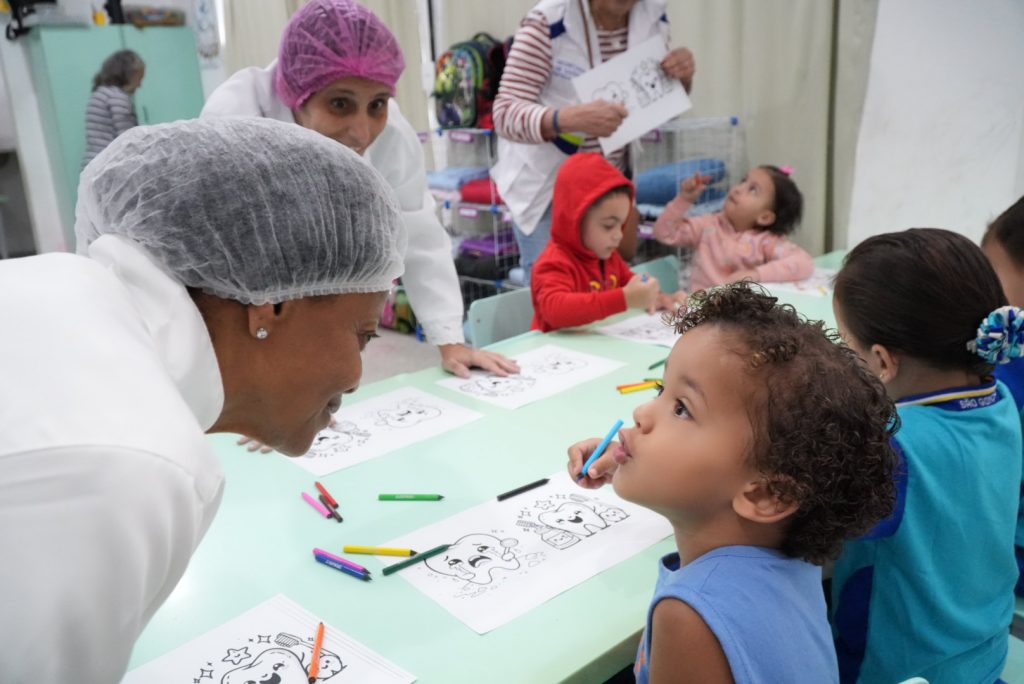 As crianças de 2 a 4 anos participaram das atividades por grupos. Ao todo, 134 estudantes iam passar pelas brincadeiras lúdicas, que misturam diversão e aprendizado. Todas as crianças que participaram ganharam certificado de coragem, escova dental e kit de colorir.