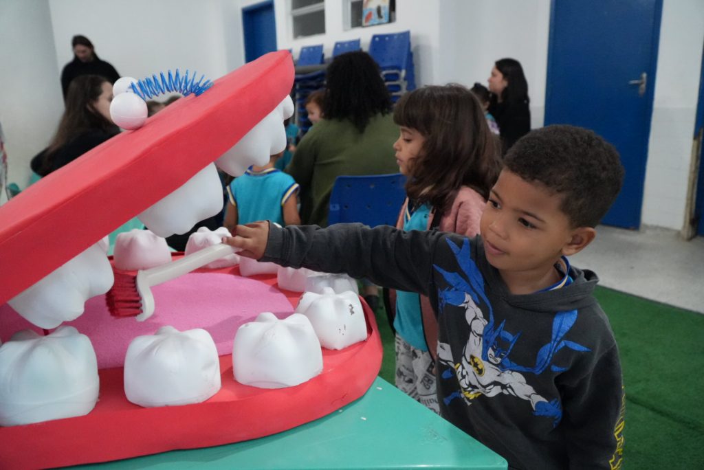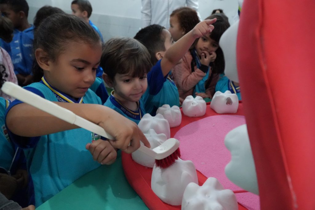 Crianças aprendem a cuidar dos dentes com brincadeiras lúdicas