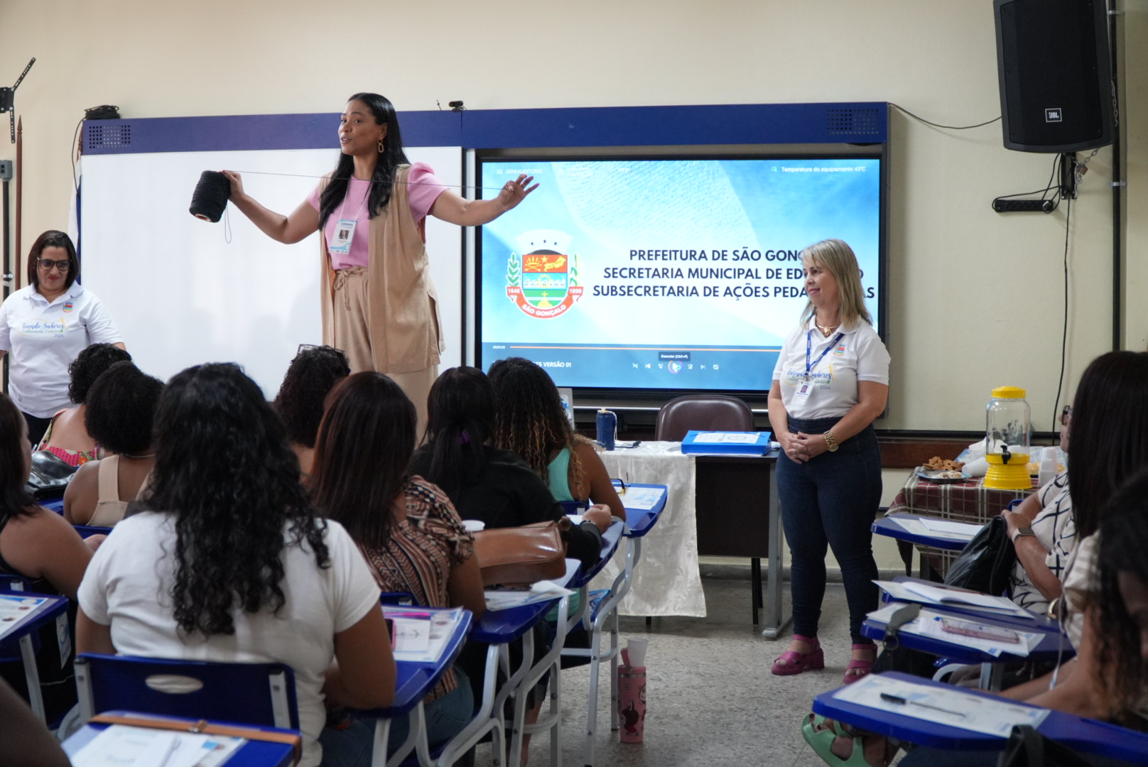 A Secretaria de Educação da Prefeitura de São Gonçalo realizou, nesta terça-feira (3), a I Jornada dos Profissionais da Educação, onde cada categoria teve formações voltadas para suas áreas em oito polos diferentes da cidade. As formações aconteceram no Teatro Municipal, no Centro; na Universidade do Estado do Rio de Janeiro (UERJ), no Patronato – onde aconteceram três formações distintas; no Sest Senat, em Tribobó; no auditório da Secretaria, no Centro Municipal de Formação Continuada Prefeito Hairson Monteiro dos Santos, no Barro Vermelho; e na Universo, na Trindade.