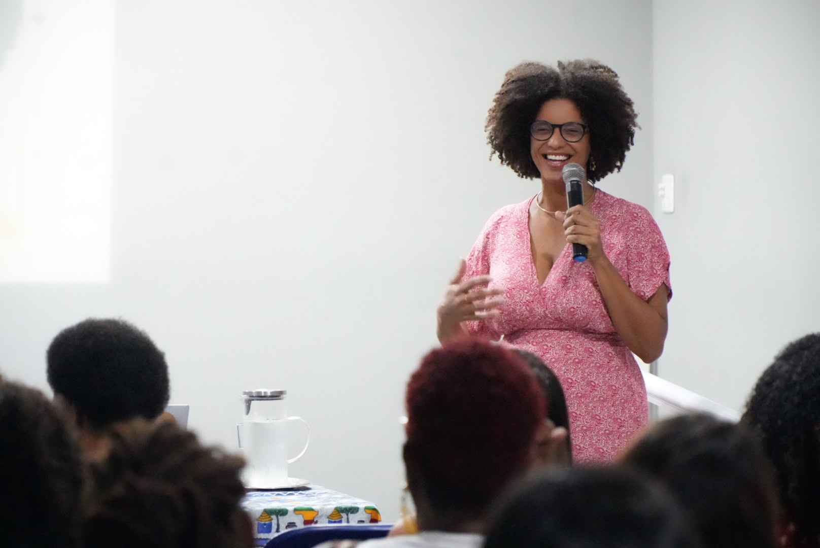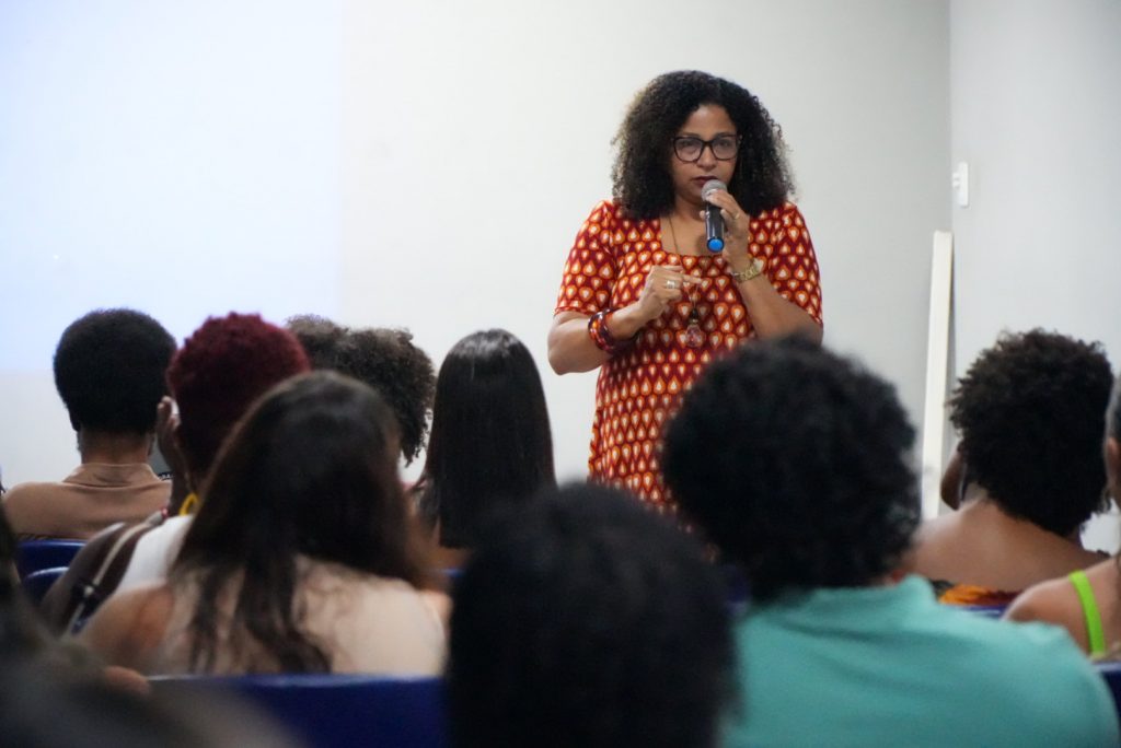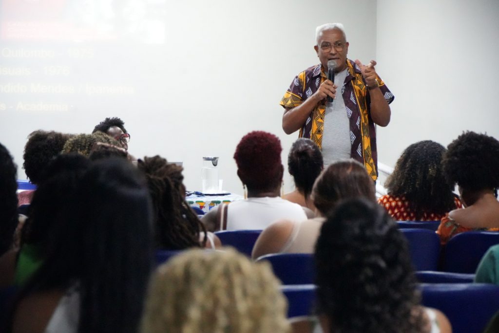 “A ideia de hoje foi trazer uma formação continuada para os professores e equipe pedagógica das escolas, diretores escolares e coordenadores, para a gente amarrar o fim dessa exposição que constitui uma possibilidade de inserir, no currículo escolar, coisas importantes para a cultura do Brasil. Quando a Lélia fala de ‘amefricanidade’, é um termo que chama atenção para a invisibilidade dos povos originários e dos povos africanos na cultura”, disse a diretora do Centro Municipal de Formação Continuada Prefeito Hairson Monteiro dos Santos (Crefcon), Shirley Victorino.
