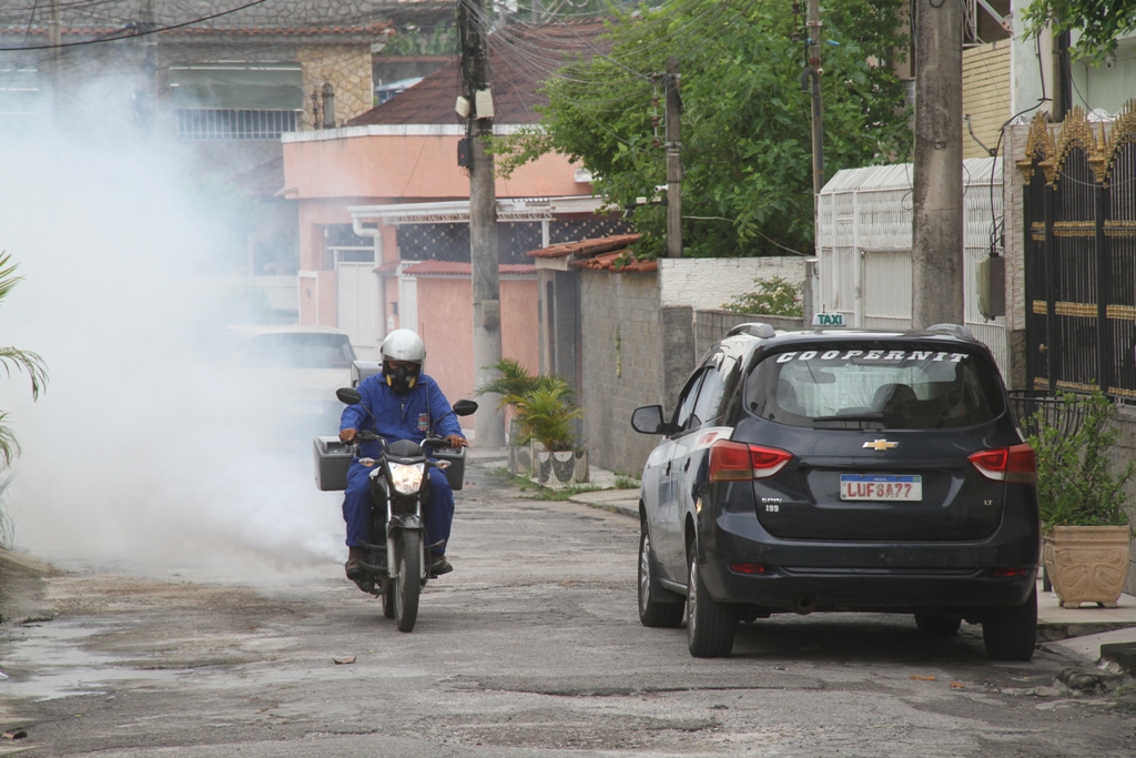 Dias quentes e abafados com pancadas de chuva no fim da tarde. Esta é a combinação perfeita para a reprodução do mosquito Aedes aegypti – transmissor da dengue, zika e chikungunya. Por este motivo, a Vigilância em Saúde Ambiental da Secretaria de Saúde e Defesa Civil da Prefeitura de São Gonçalo intensifica o trabalho de pulverização de inseticida pelas motofogs neste período do ano.