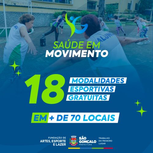 O projeto Saúde em Movimento, que faz parte da Fundação de Artes, Esporte e Lazer (Faelsg) de São Gonçalo, está em vigor com 18 modalidades esportivas gratuitas em mais de 70 locais espalhados pelo município.