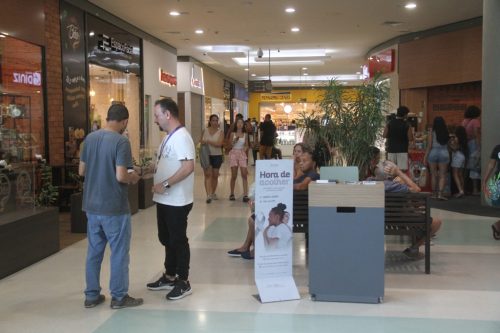 Mesmo enfrentando resistência devido à falta de conhecimento da população sobre a importância e os cuidados que devem ser tomados em relação à saúde mental, os profissionais estão no comércio repassando as informações. O acolhimento – chamado de escuta acolhedora – é realizado em local reservado do empreendimento.